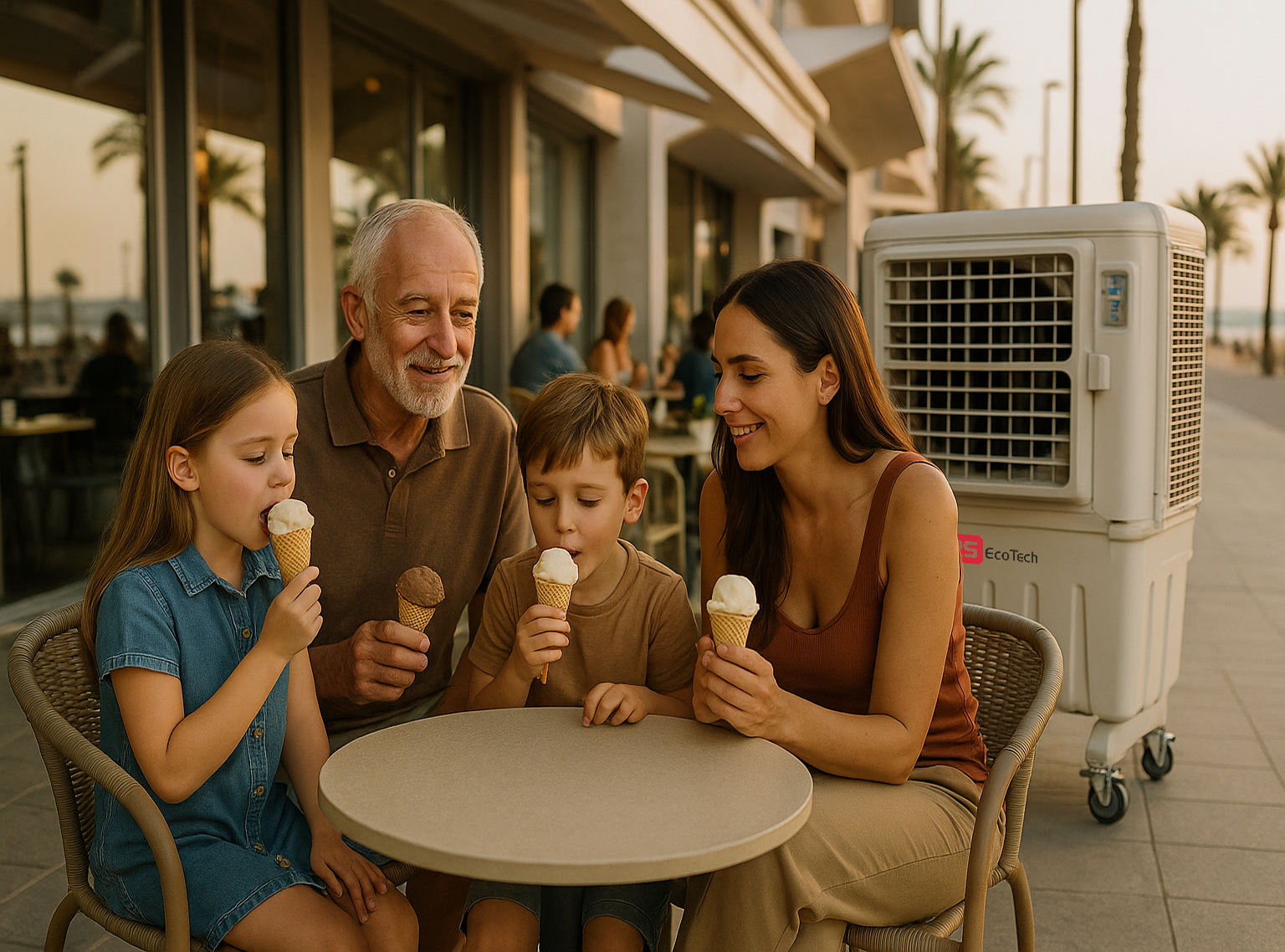 Refrigera áreas de hasta 90 m2. Perfecto para salones de restaurantes amplios, casetas de feria, oficinas open office, tiendas, terrazas amplias, etc…