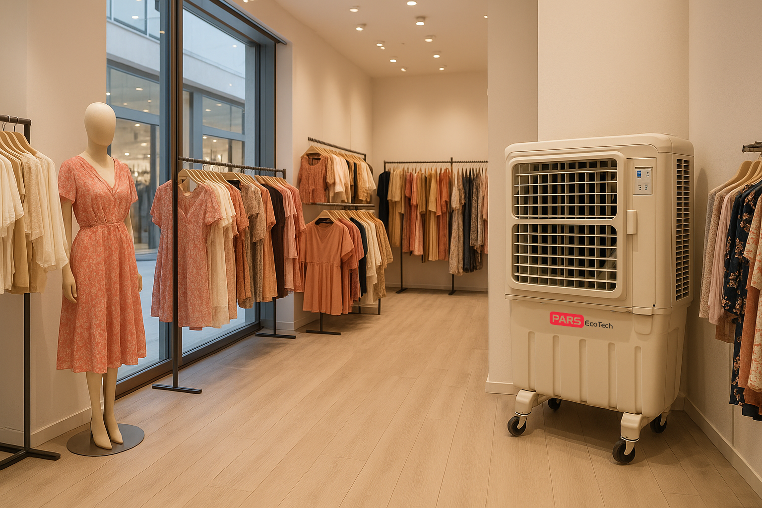 Climatizador evaporativo con flujo de aire de 9.000 m3/h, la alternativa de bajo consumo y ecológica para refrescar el ambiente.