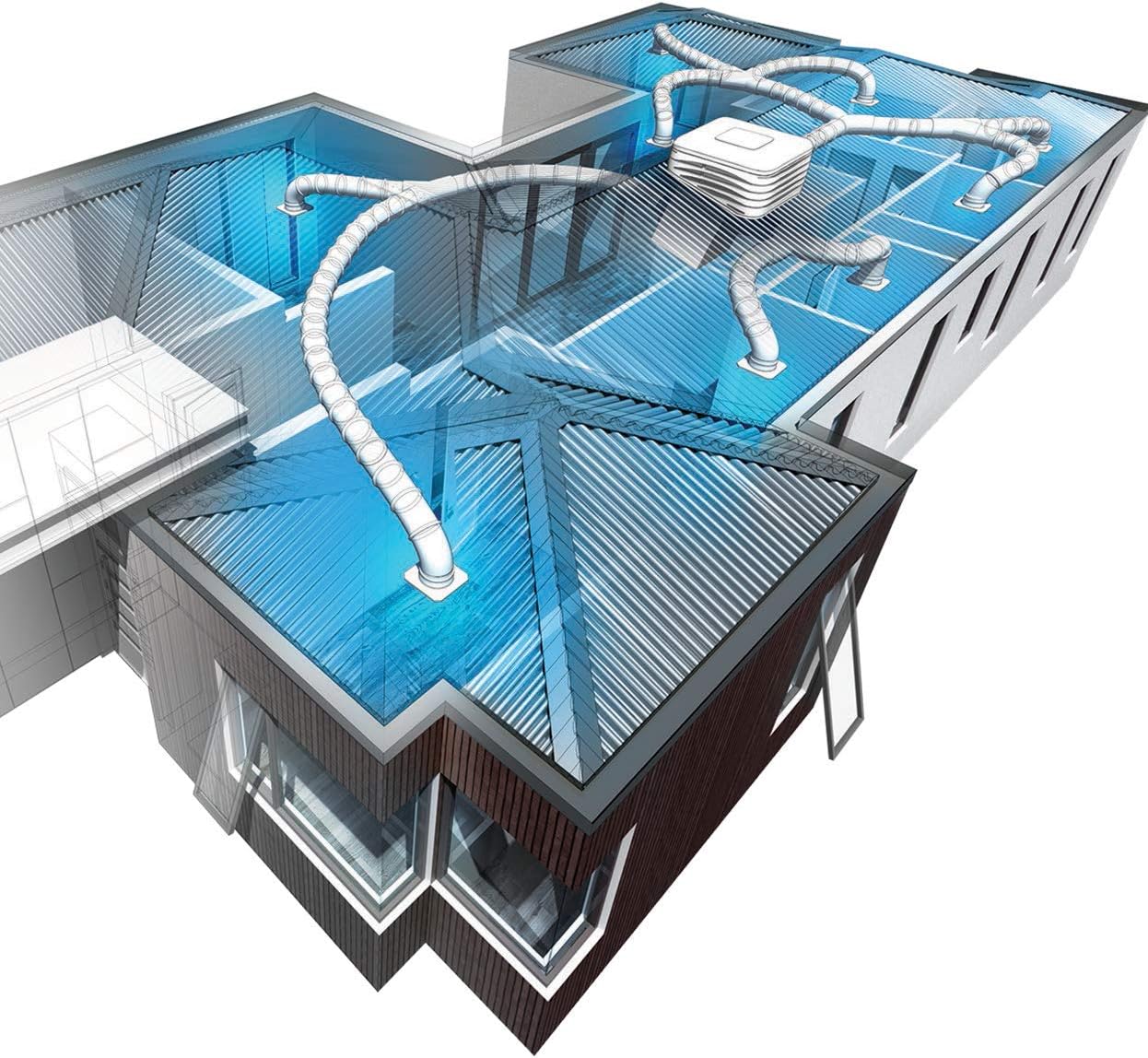 Refrigera áreas de hasta 100 m2. Para instalar sobre tejado y reparto de aire por conductos. Perfecto para viviendas y naves industriales.