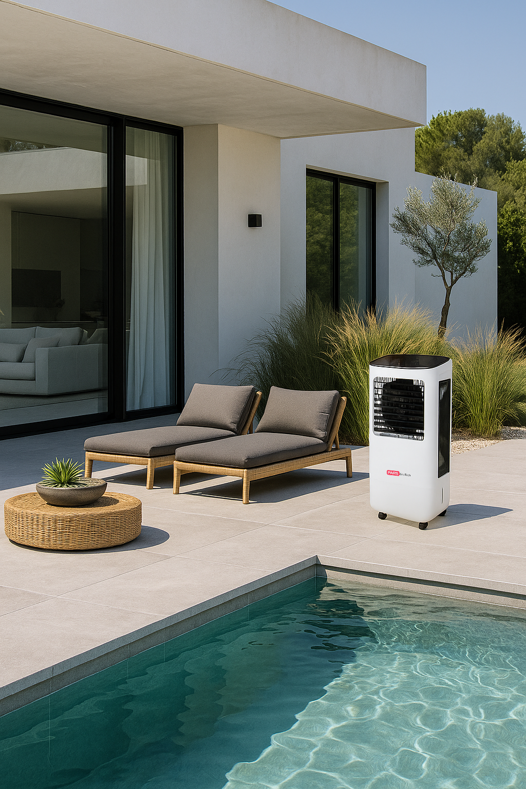 Climatizador evaporativo con flujo de aire de 5.000 m3/h, la alternativa de bajo consumo y ecológica para refrescar el ambiente.